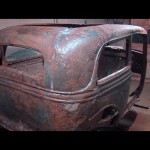In 2003, with the help of his son in law, Larry went back to the dump to rescue his ’34. After an extensive excavation (I can’t even believe he was allowed to do this!), the car was pulled from the rubble and Larry got to work.